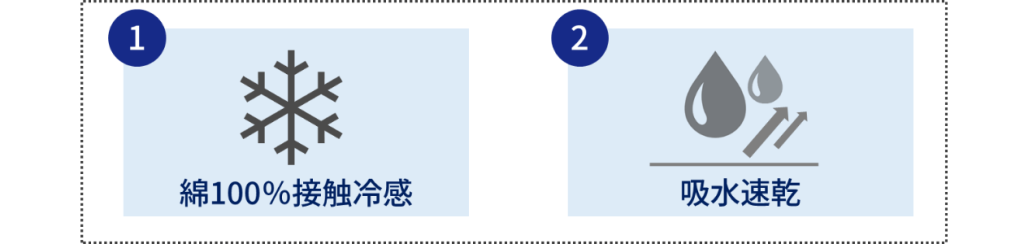 綿本来の風合いを保ったまま、触れた瞬間にひんやりと感じる冷感性を可能にしました。